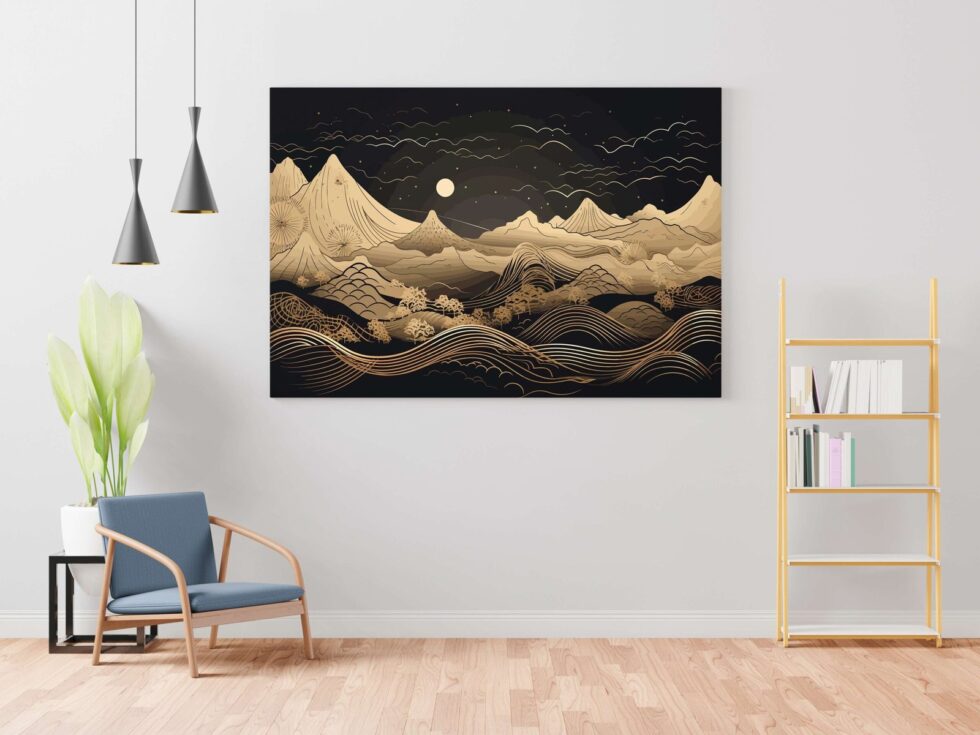 A stylish golden round framed painting to brighten your home with elegance.